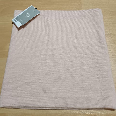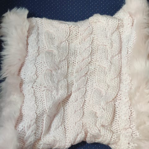 Vaaleanpunainen kauluri kimaltavilla langoilla.