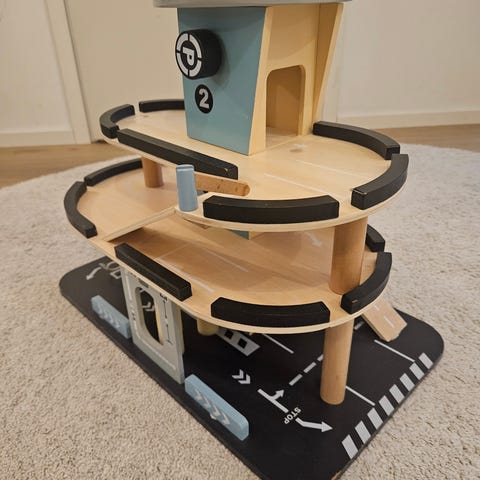 Myydään kaunis puinen parkkitalo, johon kuuluu helikopteri, juna ja ambulanssi. Parkkitalossa helikopterin lasteutumisalusta hissin päällä ja alhaalla junarata, joka on yhteensopiva BRIO - junaradan kanssa.