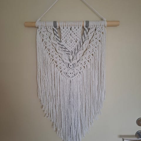 Myyntiin uusi itse tehty valkoinen makramee seinävaate.