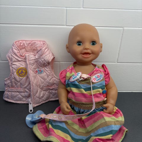 Baby Born Lena nukke, koko 36 cm. Nukke on varustettu vaaleanpunaisella pipolla ja vaaleanpunaisella paidalla, joissa on kuvioita. Sopii lapsille 1-vuotiaasta alkaen. Uusi