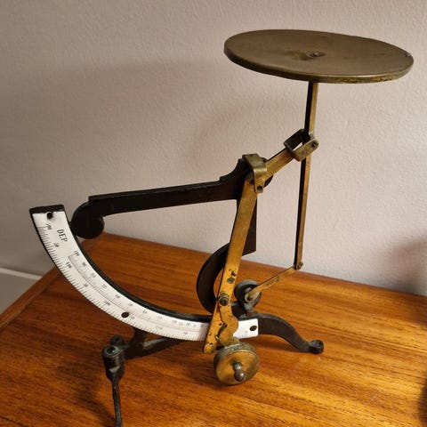 kirjevaaka, vaaka, vintage, antiikki, saksa, 1930-luku, 1940-luku, JMAZ, koriste-esine, sisustus, toimisto, vanha, kirje, keräily, metallivaaka