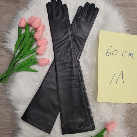 Uudet lampaannahkaiset oopperakäsineet, pituus 60 cm!! Elegantit, ainutlaatuiset ja klassiset! Katseenvangitsijat tilaisuuteesi! Saatavilla myös kaikki koot ja pituus 55 cm. Katso myös muut oopperakäsineiden listaukseni.