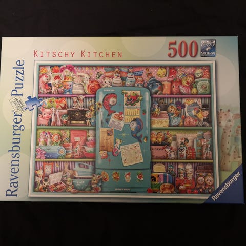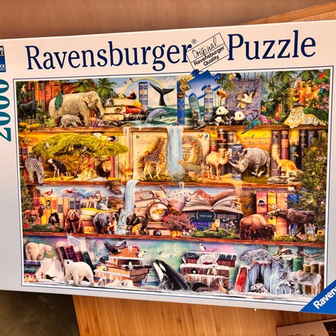 Ravensburger Puzzle Wool Cat, 100 palaa, mukana kuva kootusta palapelistä, sekä alusta pelin kokoamista varten.
