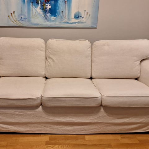 Yksi sohva tyyny revennyt ei haittaa käyttöä mitenkään katso vika kuva. Muut tyynyt todella tuuheita!