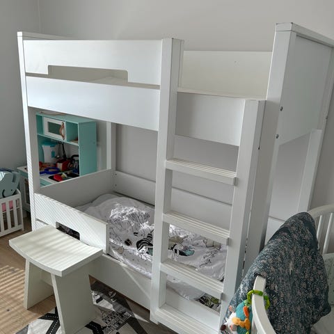 Myydään laadukas ja vankka Bopita-talotyyppinen lastensänky, joka on ollut käytössä kahdella lapsella. Sänky on ollut meillä todella rakastettu ja tarjonnut hyvät unet 4–11-vuotiaille. Myynnin syynä on tarve saada koulupöytä sängyn alle, joten vaihdamme toisenlaiseen ratkaisuun.