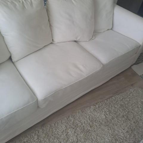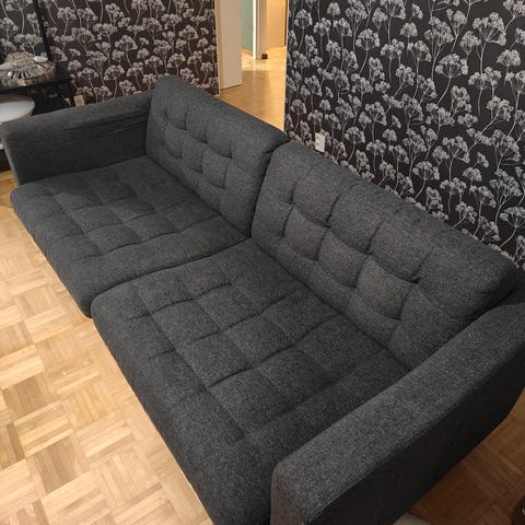 Myydään Ikea Norsborg 3-istuttava sohva, kunto kohtalainen: istuintyynyissä irrotettavat tyynynpäälliset. Istumaleveys n. 180cm, istumasyvyys 56cm, istumakorkeus 47cm, laitojen sivukorkeus 70cm. Runkoverhouksen ylälaidassa pieni purkauma (1x1cm) kankaassa, korjattavissa. Omat kantajat mukaan, nouto Nokia/Tyrkkölä. HP 70€/fiksu tarjous. Myydään nopeimmalle, pikaiset kaupat, ei alustavia varauksia.