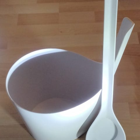 Ekologisesta biokomposiitista Suomessa valmistettu selkeälinjainen Rento Pisara saunakiulu ja -kauha. Tyylikäs saunasetti sopii erinomaisesti suomalaiseen saunaan.