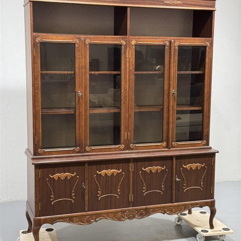 Hakusanat: koristeellinen, ranskalainen, lasiovet, koristeet, elegantti, 1700-luku, vintage huonekalut, hienostunut, kaarevat muodot, puu, antiikki, vintage, rokokoo, sisustus, astiakaappi, hyllyt