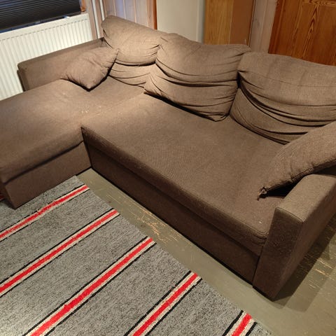 Kahden istuttava sohva, verhoilu alkanut purkaantua, muuten siisti kuntoinen