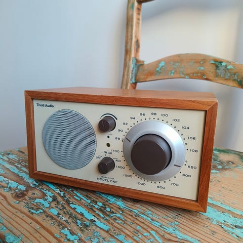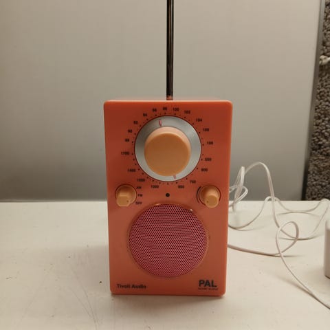 Todella siistikuntoinen ja täysin toimiva kelloradio. Virtajohto mukaan, mutta toimii myös paristolla. Antennia ei ole tallessa, mutta ainakin yleisimmät kanavat kuuluvat täysin hyvin ilmankin.