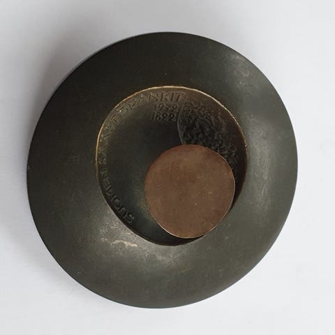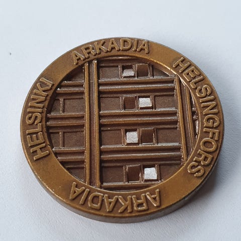 Hakusanat: mitalit, taide, mitalitaide, metallit, pronssi, huotoasemat, Esso, kuvanveisto, retro, vintage, design, Finnish design. Lähetän.