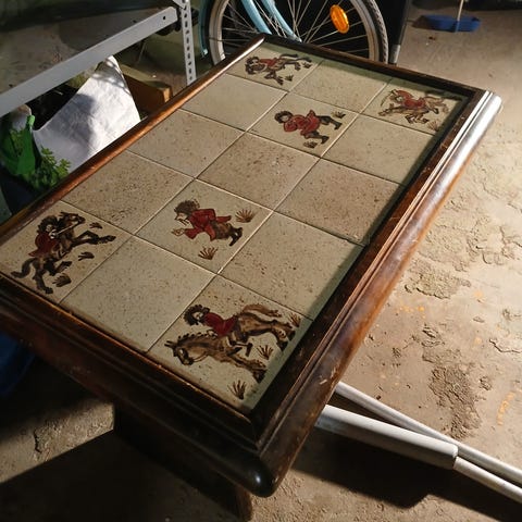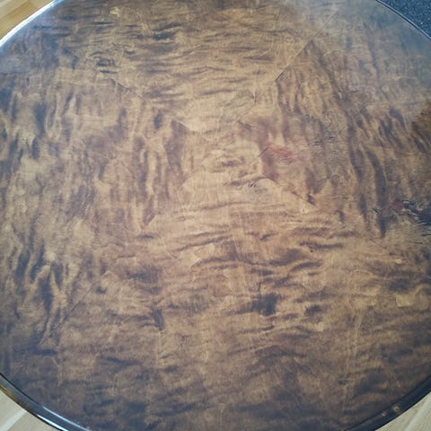 Pyöreä vintage/antiikkinen, massiivinen sohvapöytä, korkeus 62cm, leveys/läpimitta 98cm