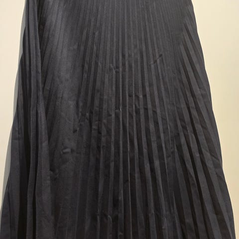 Musta hame, jossa kultainen kukkakuviointi (jacquard). Hameessa tyllikerros. Koko 40.