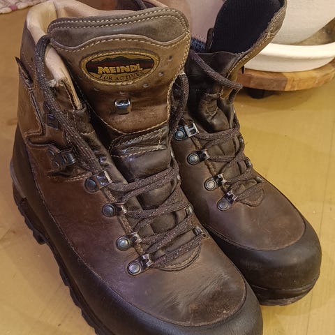 Kaksi vaellusta nähneet kengät, todettu puolta kokoa liian pieneksi itselle. Erittäin laadukas kenkä, nahkaa. Moitteeton kunto.