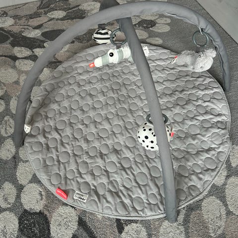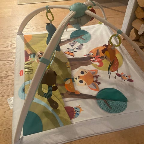 Tiny Love lasten leikkimatto, jossa pehmeä alusta ja kaari, johon on kiinnitetty erilaisia pehmeitä leluja. Leikkimatto on väriltään monivärinen ja siinä on eläinhahmoja. Soveltuu vauvoille ja pienille lapsille leikki- ja motoristen taitojen kehittämiseen. Ääniä, värinää ja värejä.