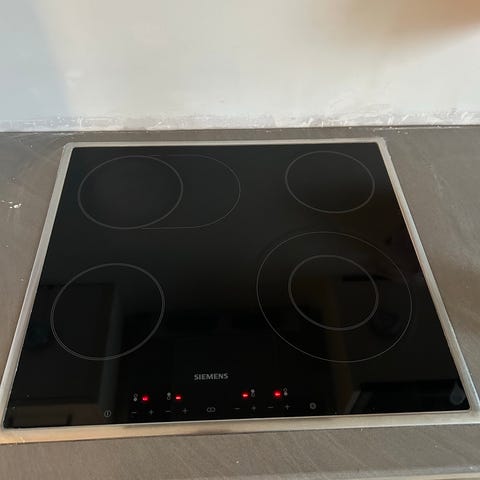 Bosch keraaminen liesitaso, jossa on neljä keittoaluetta. Kiehautusautomatiikka painamalla + ja - yhtäaikaisesti (pitää n. 4min täydellä teholla ja sitten palaa valittuun lämpötilan asetukseen). Helppo ja nopea lämpötilan asetus levykohtaisilla +/- säätimillä.