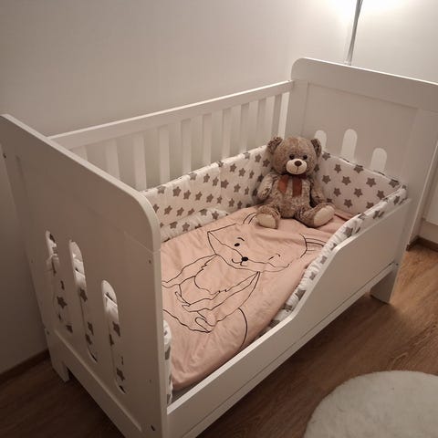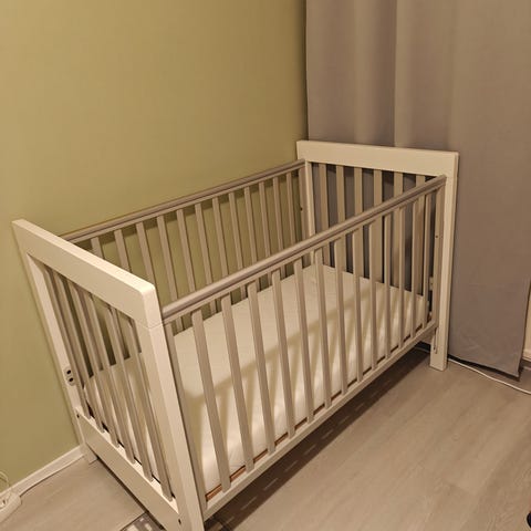 Päällinen pesty myyntiä varten. Ollut käytössä noin vuoden. Ei tahroja. Aina käytetty vedenkestävä patjasuoja.