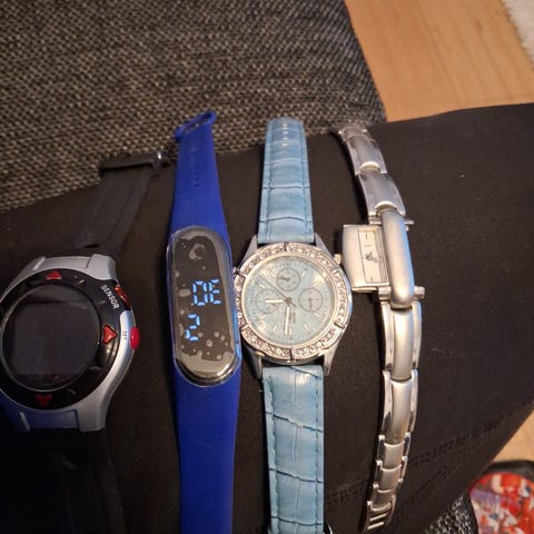 Myydään kuvien mukainen naisten korukello. Merkistä ei tietoa. Kello ei tällä hetkellä käy ja ei tietoa lähteekö pariston vaihdolla toimimaan. Etupuolen lasin alaosassa on halkeama, muuten ok siisti. Hinta 5 euroa, nouto Seinäjoelta tai postitus (postikulut lisätään hintaan).