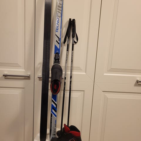 Uudenveroinen lasten hiihtosetti otsikon mukaisilla mitoilla.