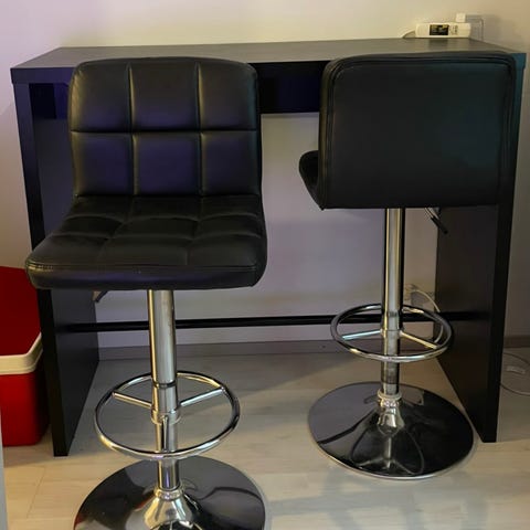 2 kpl tukevia Jyskin baaripöytiä. Saa myös vastakkain laittamalla reilun saarekkeen tai kulmittain kätevän nurkkauksen. Myös 2 kpl baarituoleja, toinen uudesta lähtien pitänyt kahinaa pyöriessä. Kaikki todella siistejä. Pöytä ja tuoli 80€ tai koko satsi 150€. Maksu käteisellä noudettaessa. Helppo kuljettaa purettuna.