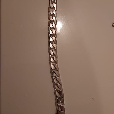 45cm pituinen ketju terästä, tukeva lukko napsahtaa tiukasti kiinni.