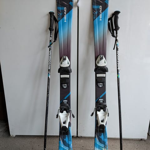 Head laskettelusukset ja siteet lapselle. Ensimmäiseltä käyttäjältä (ostettu 2022) ja vähälle käytölle jääneet. Muutama jälki pohjissa, jotka näkyy kuvissa.