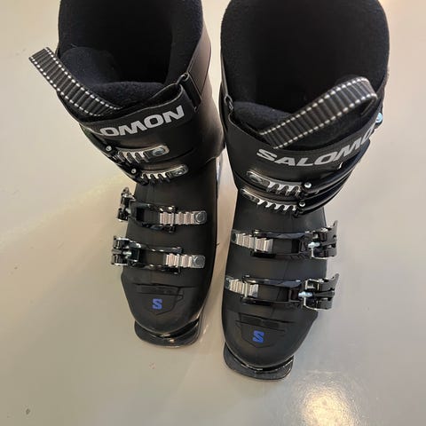 Salomon S Max 60T laskettelumonot valkoisena. Monot on varustettu neljällä soljella ja tarranauhakiinnityksellä varmistamaan jalkineen istuvuuden. Koko 22/22.5.