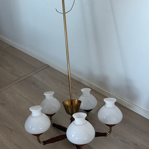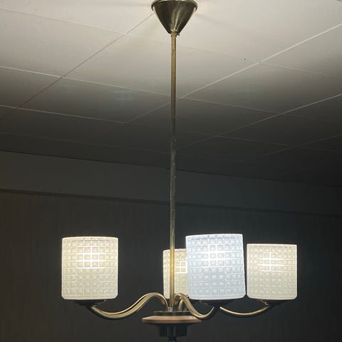 Edellä mainittuja puutteita lukuun ottamatta kattokruunu ja lampetit hyvässä kunnossa ja toimivat.