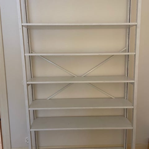 8 hyllyä, kahdet tikkaat ja takaristikko.
