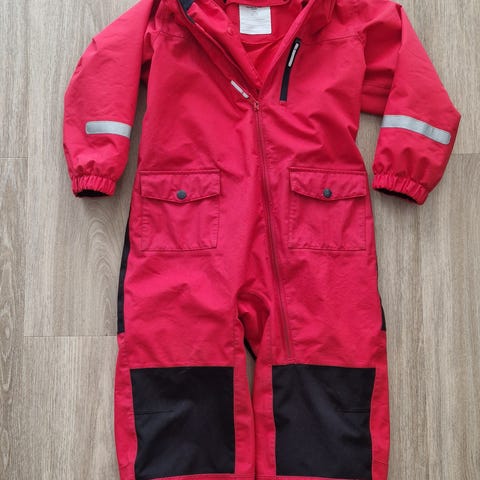 Polarn O pyretin weather pro - kuorihaalari jossa irroitettava paksu fleece-vuori. Ainoa virhe on toisen lahkeen repsottava heijastin. Tämän voi korjata jos häiritsee. Yhdellä ollut. Kuorihaalari on vedenkestävä ja fleecen kanssa toimii hyvin myös pienillä pakkasilla.