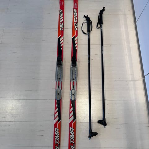 Sukset 140cm SNS-siteillä + sauvat 100cm