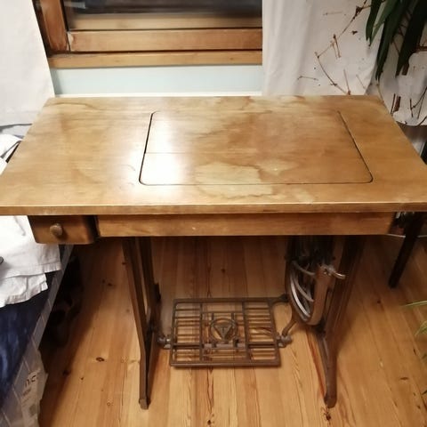 Husqvarna Typ C.B. N ompelukone puupöydällä