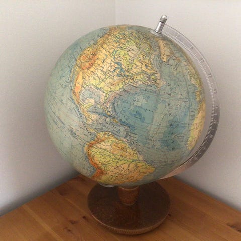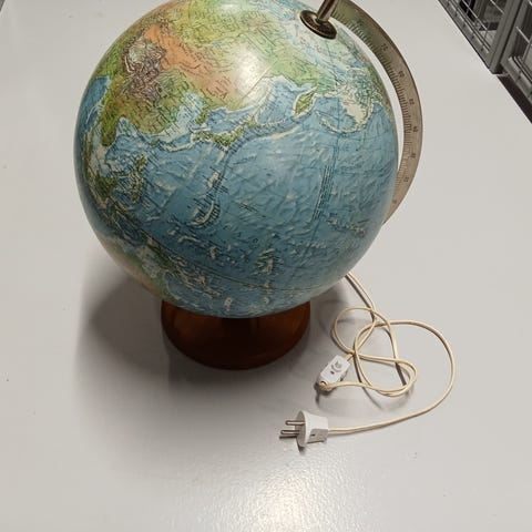 Myydään hieno 70-luvun karttapallo valolla. Toimii, katkaisija uusittu