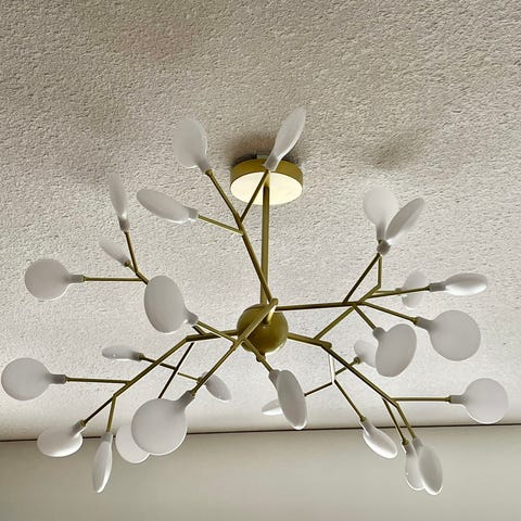 Kattovalaisin sopii erinomaisesti ruokapöydän päälle. Valaisimen päälle voi laittaa koristeita tai tuikkukynttilöitä laseihin. Valaisin on ollut varastossa ja sille ei ole tarvetta nykyisessä kodissa. Testattu ja toimii edelleen.