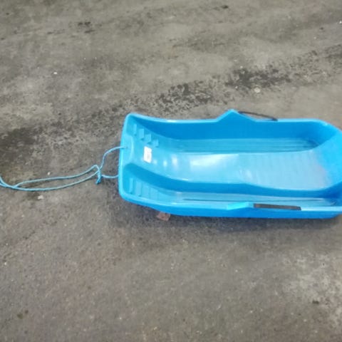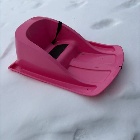Pinkki Orthex pulkka selkänojalla ja käsikahvoilla. Ehjä ja siisti, mutta pohjassa on naarmuja.