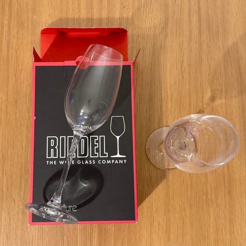Kaupan päälle 2kpl monikäyttöistä Riedel-yleislasia, oletettavasti tyyppi on Riedel O Spirits. Lasin korkeus 9cm.