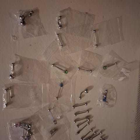 3. kuva: kultainen (hypoallerginen) industrial tanko (ovh. n. 80e)