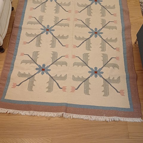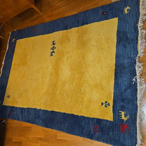 Konekudottu vanha villamatto. Paikoin vähäistä kulumaa. Nouto tai lähetys.