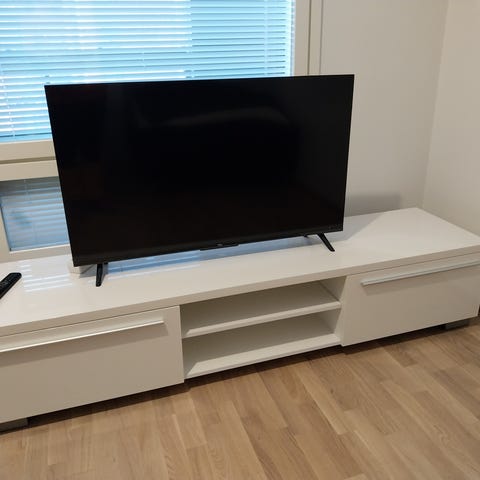 Vekestä ostettu tv-taso, pari vuotta ollut käytössä. Ei muita käytönjälkiä, kuin yhdessä kulmassa hieman kulumaa. (4. kuva) Vaalea puupinta ja valkoiset kaapit! 😍 OVH 200€ Nouto Oulusta, Etu-Lyötystä.