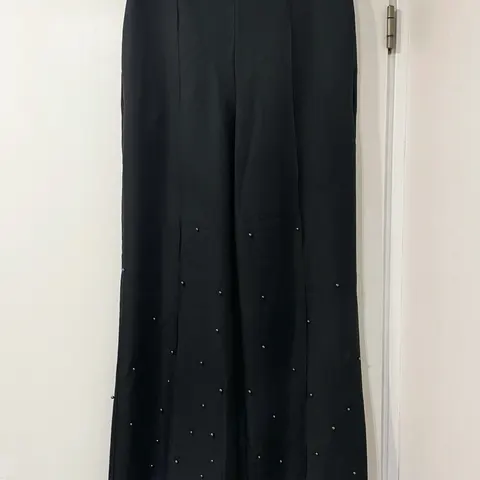 Harmahtavat Babaton suorat housut, todella siistissä kunnossa. Vyötäröllä joustoa. Koko 8, lahkeen sisämitta noin 66cm ja vyötärönympärys venyttämättä noin 75cm. Kauniisti laskeutuvaa materiaalia.