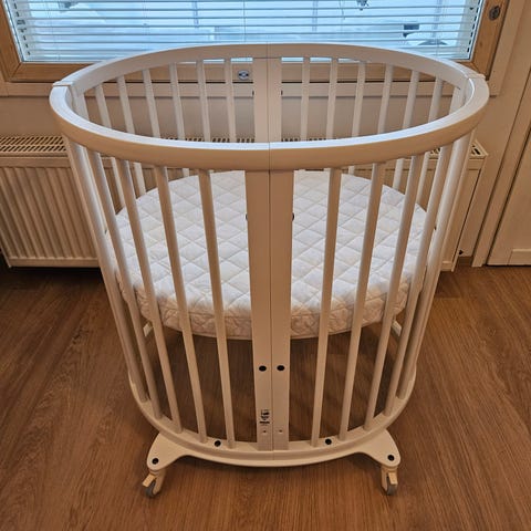 Sängyn jatkopalat ostettu myöhemmin ja jääneet meillä käyttämättä, kun vauva siirtyi suoraa toiseen sänkyyn eli käytetty ainoastaan Sleepi mini sänkyä n. 6kk eli uudenveroinen kunto eikä mitään maalikulumia/puremajälkiä ollenkaan.
