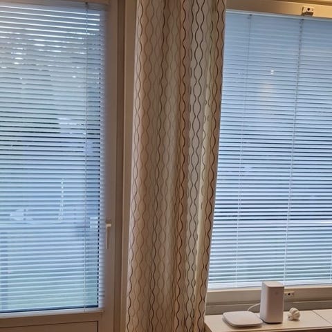 Myydään kuvan verhot. Puuvillapellava. Kangas ostettu Eurokankaasta. Valkoiset.