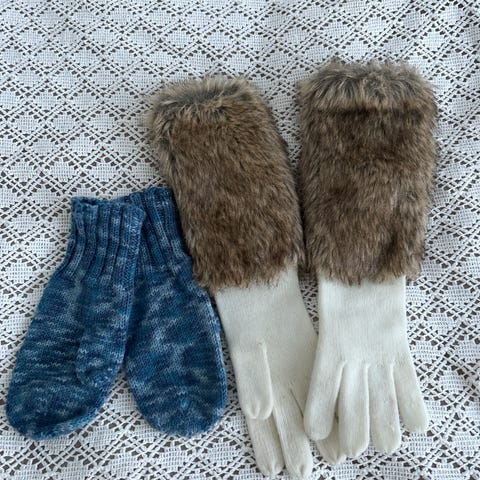 Käyttämättä jääneet hanskat ja sukat , sukat kokoa 39.