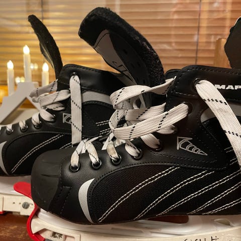 Maple jääkiekko luistimet lasten koko 37. Luistimet ovat suunniteltu jääkiekkoon ja lasten käytettäväksi. Ollut käytössä pari kerta. Luistimet on kun uusi.