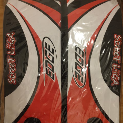 Katulätkän maalivahdin patjat + räpylä pihapeleihin esim. Patjat ehjät mutta pehmusteet kuluneet käytössä. Soljet ok. Räpylä ok.