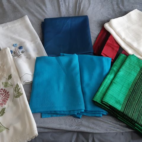 Vähän käytettyjä verhoja kasa