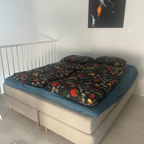Myydään hyvä ja kuin uusi 1.5 vuotta vanha kova Jysk Dreamzone Gold jenkkisänky, 160x200 cm. Myydään ilman sijauspatjaa.
