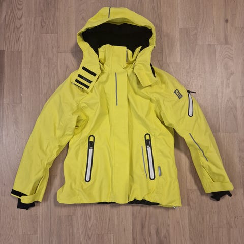 Takki on ostettu uutena ja sitä on käytetty vain parina laskukautena yhteensä kolmella vajaan viikon mittaisella laskettelureissulla pelkästään rinteessä. Takki on siten täysin ehjässä ja todella siistissä kunnossa.