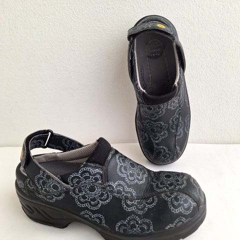 Jalaksen hyväkuntoiset käytetyt turvakengät koossa 36. Hieman pölyiset tällä hetkellä, muuten hyvät ja kunnossa. Nämä on tosi reilua kokoa, omaan 37-38 jalkaani nämä on olleet täysin sopivat. Myyn pois uusien tieltä. Tarkkaa sisämittaa vaikea ottaa, mutta pikaisesti raksamitalla otettuna sain mitaksi 23cm.