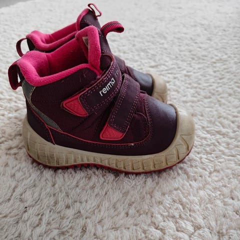 Käytetyt Reima Passo -välikausikengät koko 23, sisämitta 13,5cm. Paljon jo käytetyt, mutta edelleen käyttökuntoiset lämpimät vk-kengät. Ei enää kosteimpiin päiviin, mutta edelleen toimivat vähän kuivemmalla kelillä. Tilava malli. Koiratalous.
